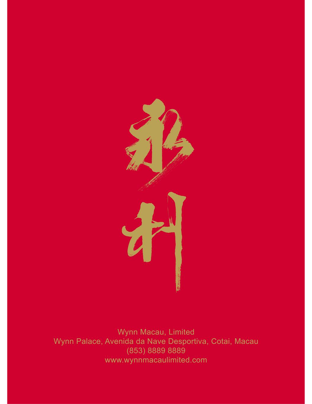 Wynn Macau, Limited Wynn Palace, Avenida da Nave Desportiva, Cotai, Macau (853) 8889 8889 www.wynnmacaulimited.com